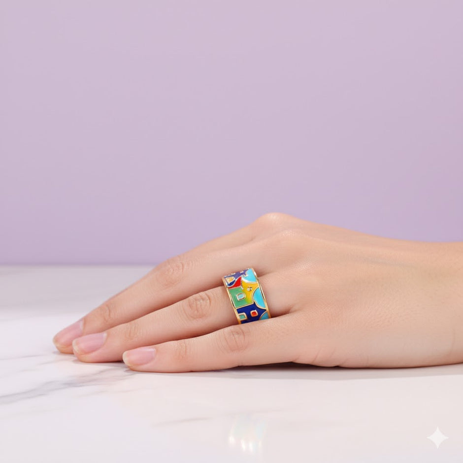 Bague en émail pour femmes, nouveau Design créatif coloré, bande de couleur or, bagues amusantes pour filles, cadeau Hip Hop, bijoux de fête