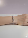 Le bracelet est composé de plusieurs maillons en forme de cœur, chacun contenant une pierre précieuse de couleur rouge foncé, du grenat. Ce qui donne au bracelet une apparence élégante et durable.