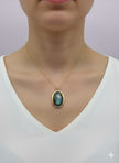 " LABRA" Pendentif labradorite ovale sertie de zircon en vermeil